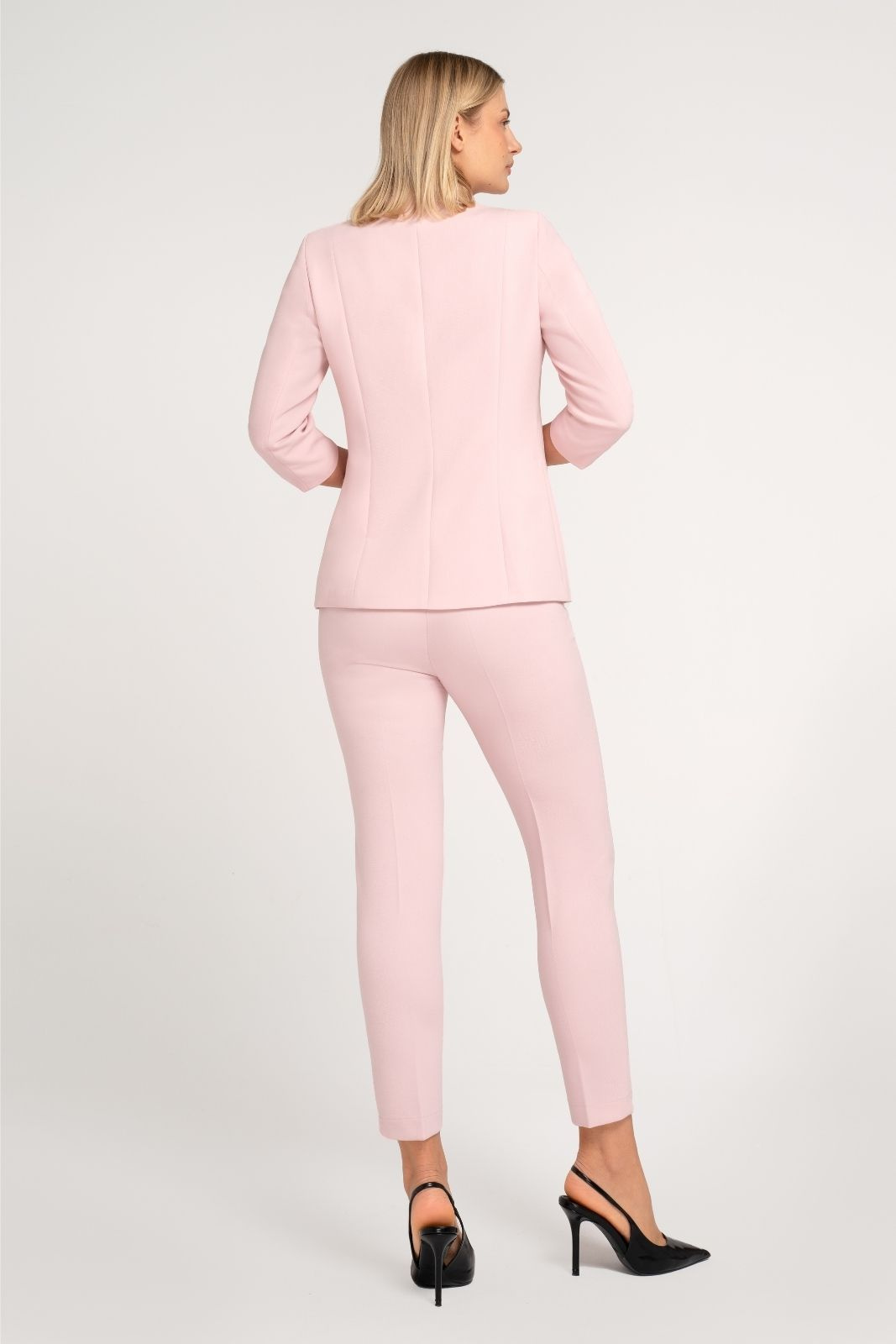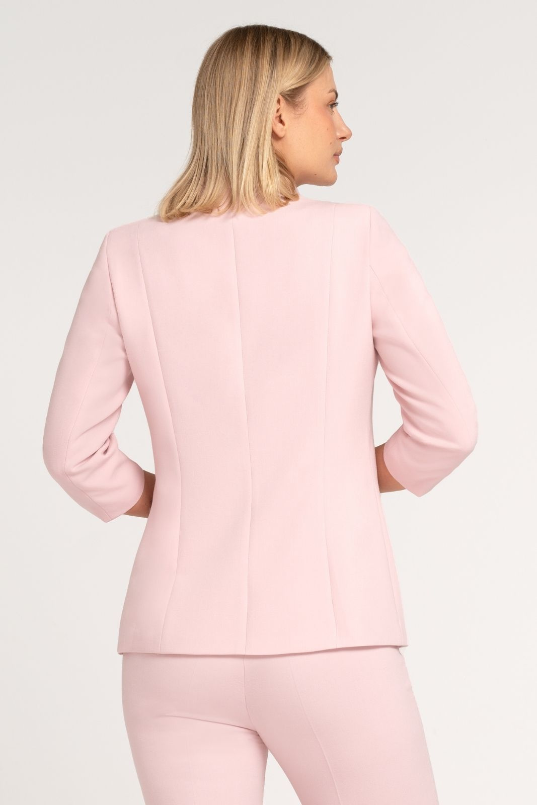 Żakiet damski pudrowy ze stójką i rękawem 3/4 – Elise